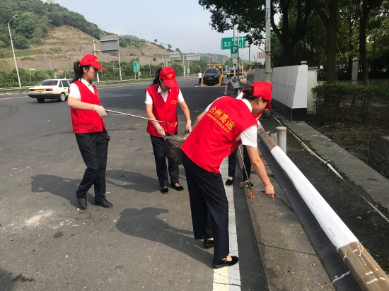 圖為志愿活動現(xiàn)場 “這邊有可樂瓶、邊溝上有塑料罐?!?/span> 另一邊由吳偉麗、周戰(zhàn)帶隊的一行女同志,對收費所周邊互通匝道、及沿線綠化帶等區(qū)域進行清撿。不好夾就用手撿、拾不起來就用手摳。大家發(fā)揚不怕苦、不怕累、不怕臟的精神,一路走走停停,將收費區(qū)域、綠化帶的塑料袋、紙巾、煙蒂等垃圾及邊溝的淤泥都被清理得干干凈凈,使得周邊區(qū)域環(huán)境煥然一新。 此次活動,大家不畏艱苦,冒著炎炎烈日,對路面垃圾清理、倒樹處理、物資搬運等工作積極奮戰(zhàn)。經(jīng)過一個上午的通力合作,所內(nèi)及周邊環(huán)境大為改觀。 臨海南收費所黨員們真正做到“平常時候看得出,關(guān)鍵時刻站得出”,以共產(chǎn)黨員的模范行動,挺身在前,將災(zāi)后恢復(fù)工作各項措施落到實處。 陳瑩