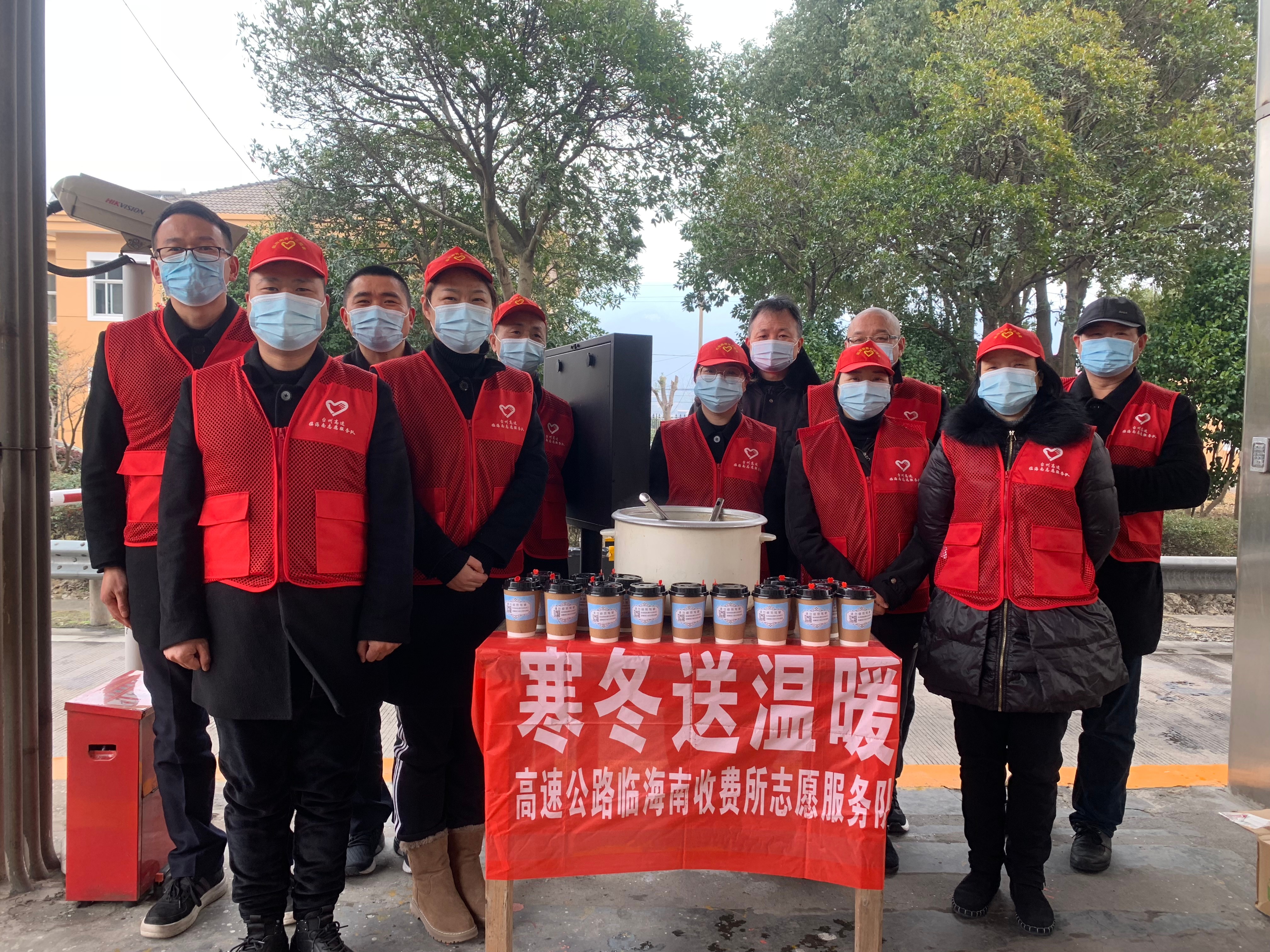 17日中午,臨海南收費所開展寒冬送溫暖志愿服務活動,為過往駕駛員捧上了一杯杯溫熱的紅糖紅棗姜茶,為他們送去了寒冬里的一縷溫暖。