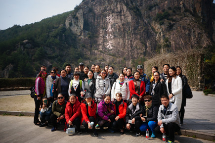 圖為第一批參加人員在瓊臺仙谷合影 上午9點30分,三個所共計40多位員工在集團公司下屬的旅行社導游小孫的帶領下,從臨海結集出發(fā),去往“人與自然和合、人與人和合、人與社會和合”的“和合圣地”——天臺,游覽國清寺和瓊臺仙谷?!昂秃衔幕笔翘炫_山文化的精華,也是中華傳統(tǒng)文化的核心與精髓。近年來,臺州市大力推進“和合文化”品牌建設,全力打造“和合圣地”,賦予“和合文化”新的生命力。大家深處由秀美的自然山水和內涵極豐富的佛道文化構成的天臺山美景中,享受著自在與輕松,整個活動過程更洋溢著“健康、和諧、友好、愉悅”的濃厚氛圍。 此次“一日游”活動,不僅激發(fā)了女員工們積極向上、自強不息的精神,也促進了同事之間的感情,增強了隊伍的凝聚力和戰(zhàn)斗力,從而營造和諧美好的氛圍。 鄭瑛芝