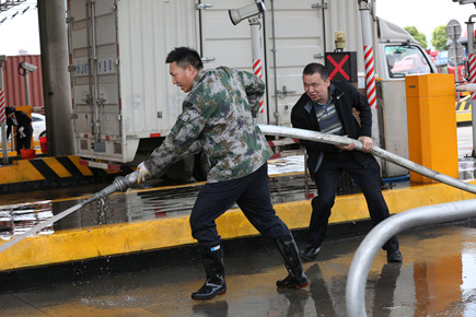 圖為高壓水槍沖洗車道