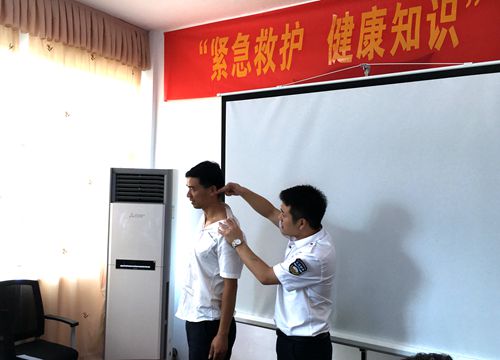 圖為授課現(xiàn)場 授課老師向水平為大家講述了現(xiàn)場心肺復(fù)蘇術(shù):判斷呼吸→高聲呼救→擺體位→打開氣道→人工呼吸及如何進行按壓與吹氣,隨后他授以簡單的醫(yī)學(xué)理論知識,對高血壓、心臟病、糖尿病等疾病的預(yù)防作了普及。當談及上班族普遍面臨的不樂觀的嚴峻現(xiàn)實:受肩周炎、頸椎病、腰椎間盤突出等職業(yè)病困擾時,向老師以現(xiàn)場演示的方式教大家?guī)渍袀鹘y(tǒng)的中醫(yī)方法——穴位按摩,鼓勵大家自己動手,通過按摩這種最直接的方法,緩解不適。