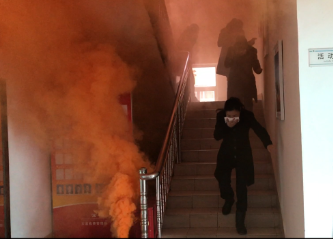隨后,溫嶺西收費(fèi)所組織全體員工模擬親身體驗(yàn)火災(zāi)逃生演練。根據(jù)安排,以所長(zhǎng)王小勇為組長(zhǎng),各所助、班長(zhǎng)為成員的緊急疏散應(yīng)急領(lǐng)導(dǎo)小組成立,明確逃生線(xiàn)路以及集合地點(diǎn)等演練內(nèi)容。一切準(zhǔn)備妥當(dāng)后,員工分布在收費(fèi)所管理房各處,模擬日常辦公。隨著煙霧彈的蔓延,逃生演練正式開(kāi)始。首先由發(fā)現(xiàn)火情者撥打模擬火災(zāi)報(bào)警電話(huà),報(bào)告起火具體位置與火勢(shì)的大小,請(qǐng)求支援,同時(shí)報(bào)告所長(zhǎng),通知人員離開(kāi)現(xiàn)場(chǎng)。參演人員立即用濕毛巾捂住口鼻,彎下身子盡量避開(kāi)濃煙,進(jìn)行緊急撤離。只見(jiàn)疏散引導(dǎo)員葉俊在三樓樓梯口指揮大家撤離,統(tǒng)計(jì)疏散人數(shù),清查本層各寢室、洗漱間后撤離;疏散引導(dǎo)員陳豐平在二樓樓梯口指揮人員撤離,統(tǒng)計(jì)疏散人數(shù),清查本層各辦公室、寢室、衛(wèi)生間后撤離;疏散引導(dǎo)員李寧在所大門(mén)指揮人員撤離,統(tǒng)計(jì)疏散人數(shù),清查本層會(huì)議室,寢室后撤離。撤離人員達(dá)到指定集合地點(diǎn),由狄文琦清點(diǎn)核實(shí)人數(shù),匯總后向所長(zhǎng)匯報(bào)情況。所長(zhǎng)王小勇確認(rèn)全體人員安全撤離后,對(duì)本次演練進(jìn)行點(diǎn)評(píng),并宣布逃生緊急疏散演練結(jié)束。