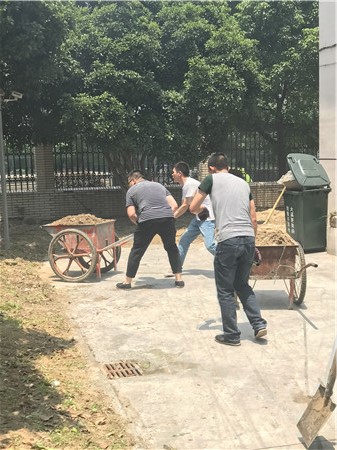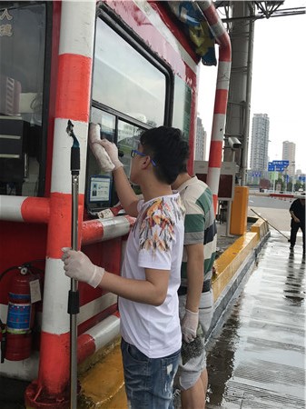 所班子對(duì)參加活動(dòng)員工進(jìn)行了合理的分組,每個(gè)小組都有自己的組長(zhǎng),組長(zhǎng)帶著各自的組員去自己所負(fù)責(zé)的區(qū)域。勞動(dòng)中,大家認(rèn)真的打掃每一處角落,即使汗流浹背,也干的熱火朝天。監(jiān)控室的玻璃,食堂的玻璃和門(mén)框,還有天花板,前后的草坪和砂子堆,收費(fèi)區(qū)域的邊溝和車(chē)道,都被大家整的干干凈凈。