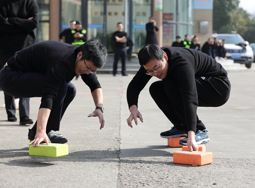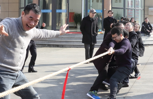 本次活動分團隊賽和個人單項賽,團隊賽包括“二龍戲珠”“背靠背”“集體跳繩”“拔河”4個項目;個人單項賽由“摸石過河”“夾乒乓球”“跳繩”“定點投籃”“俯臥撐”“仰臥起坐”6個項目組成。每個賽場氣氛活躍,加油聲、喝彩聲此起彼伏。其中拔河比賽最為熱鬧,參賽隊員個個緊握長繩,蓄勢待發(fā),隨著裁判的一聲哨響,他們在“一二三”的口令聲中卯足勁、齊發(fā)力,場邊助威聲響成一片。在“摸石過河”比賽中,身體的任何部位不得直接觸碰除河石之外的支撐物,該項目著重在手腳配合,在“河中”巧妙地移動石頭,直至到達終點。