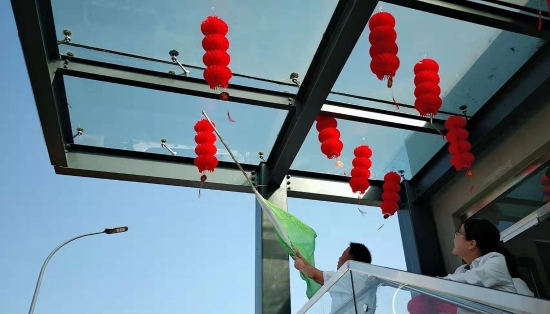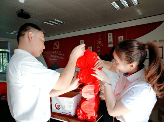 在慶祝祖國(guó)70周年生日的日子里,最火的顏色就是紅色。為了弘揚(yáng)中華民族傳統(tǒng)文化,溫嶺西收費(fèi)所后勤組早早購(gòu)置了燈籠、彩旗、五星紅旗,寫好“慶祝祖國(guó)70周年華誕”大字等。黨員帶頭,團(tuán)員緊跟,一線收費(fèi)員紛紛參與,在收費(fèi)站大門口、辦公樓、食堂、宿舍等區(qū)域精心用五星紅旗、大紅燈籠、五顏六色的彩旗裝點(diǎn),一抹抹艷麗的國(guó)旗紅,成為站點(diǎn)最靚麗的風(fēng)景。明亮的黃、鮮艷的紅,美麗窗口突然亮了起來,到處洋溢著濃濃的國(guó)慶氛圍,為過往司乘提供暢、潔、美的節(jié)日行車環(huán)境。