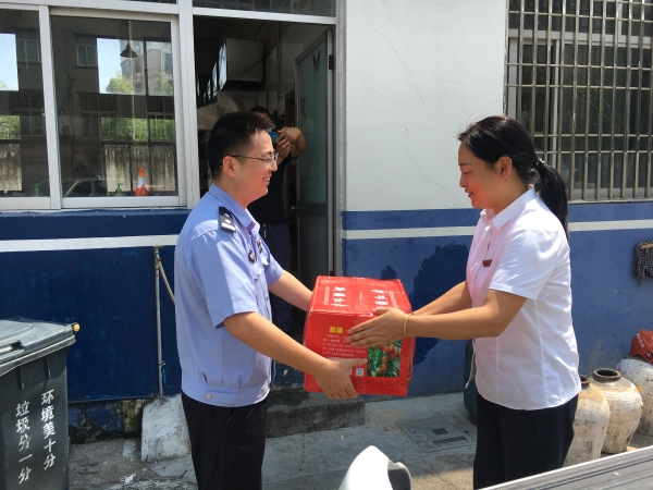 炎炎夏日送清涼 滴滴關(guān)懷沁警心 7月15日上午,溫嶺西收費(fèi)所所長楊瑩瑩等一行人頂著烈日,冒著酷暑來到大溪派出所,親切慰問派出所的民警們,并給他們帶去了紅棗、綠豆、蓮子等慰問品,表達(dá)了對民警們的關(guān)懷,對派出所長期以來為維護(hù)收費(fèi)站周邊環(huán)境穩(wěn)定所付出的辛勞表示感謝。