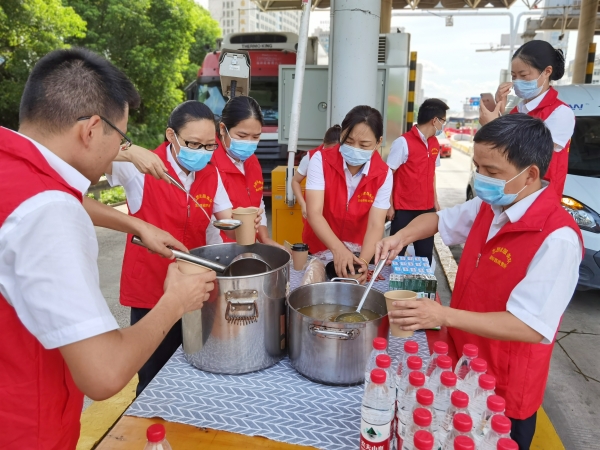 活動(dòng)開(kāi)展前,大家集思廣益,準(zhǔn)備好了綠豆湯、蓮子湯、礦泉水、藿香正氣水、風(fēng)油精、人丹等防暑降溫用品。一杯綠豆湯代表一片心意,一份貼心服務(wù)送一份清涼。當(dāng)一份份清涼和關(guān)懷送至他們手中的時(shí)候,司乘人員們先是感到驚訝,隨后連忙道謝。 “趕了這么久的路,在車(chē)上的確又熱又累,一下高速就有清涼的東西送到手上,疲勞一下都煙消云散了,為你們的服務(wù)點(diǎn)贊!”一位外地貨車(chē)司機(jī)笑著說(shuō)。 活動(dòng)中,志愿者在遞上消暑用品的同時(shí)還不忘向司乘宣傳夏季安全行車(chē)注意事項(xiàng)。收費(fèi)員在文明服務(wù)中也增加“請(qǐng)注意防暑降溫”、“請(qǐng)不要疲勞駕駛”等文明服務(wù)提醒用語(yǔ)。收費(fèi)所做的不僅僅是收費(fèi),更是用心去了解司乘人員的需求,用真誠(chéng)傳遞理念,司機(jī)臉上的笑容就是最好的回報(bào)。