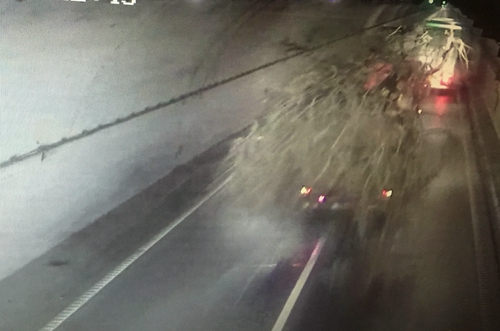 12月16日凌晨505分一輛超高超寬的運樹大貨車在造成貓貍嶺隧道照明等設(shè)施大量損壞后繼續(xù)朝黃土嶺方向前行。