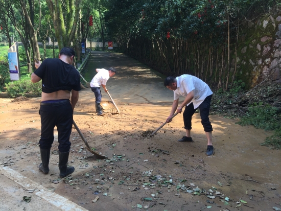 臺(tái)風(fēng)利奇馬”肆虐而過(guò),雖然黃土嶺隧道所提前做好各項(xiàng)防臺(tái)措施,但是干凈整潔的管理所在這場(chǎng)天災(zāi)中還是受到了破壞,樹木倒折、落葉、樹枝滿地,淤泥坑洼,現(xiàn)場(chǎng)一片狼藉。8月12日上午剛剛恢復(fù)正常供水的黃土嶺隧道所全體人員立馬投入到重建家園中,打掃衛(wèi)生,原地種回倒伏的樹木,清理淤泥……徹底消除臺(tái)風(fēng)過(guò)后留下的殘敗痕跡。