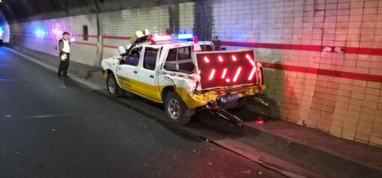 圖為事故車輛 憑著多年積累下來的經(jīng)驗,洪瑞立刻判斷該車肯定存在異常情況,趕緊使用巡邏車內(nèi)的廣播反復(fù)呼叫,提醒貨車靠邊停車檢查,并將此情況反饋到中控室。然而貨車并未停下,為了確保貨車的安全,巡邏車開啟警示燈,拉起警報,給該車預(yù)警。 當(dāng)車行駛到馬鬃嶺隧道時,執(zhí)勤隊員從后視鏡發(fā)現(xiàn)后方有另一輛大貨車正快速逼近,沒有任何減速的傾向。這一刻,留給他們的只有兩個選擇:往左拐,時間緊張,一個處置不當(dāng),會出現(xiàn)尾部被撞后再次追尾前方貨車的前后夾擊險情,后果不堪設(shè)想;或者在被撞時的一瞬間采取正確的應(yīng)對措施,在操作時絕不能有一丁點的遲疑,逃生的時機僅有幾秒鐘。 生死存亡的緊急關(guān)頭,隊員們及其冷靜,被猛烈撞擊時,沒有急踩剎車、誤打方向,在左側(cè)車道有車的情況下,處置正確、分毫不差,往右車道偏移了10來米,成功從夾縫中逃脫,化解了這次險情。巡邏車被撞后,兩名受傷隊員不顧傷痛,仍然堅持下車保護現(xiàn)場并對來往車輛預(yù)警,預(yù)防二次事故的發(fā)生,直到后續(xù)救援力量到達(dá)。 此次事故造成三車追尾,兩名執(zhí)勤隊員輕微受傷,雖然巡邏車損失慘重,但是因為執(zhí)勤隊員高度的工作責(zé)任心和對險情的正確判斷處置,才未造成任何司乘人員的傷亡,也未影響到隧道正常通行。 據(jù)隧道所員工了解,該貨車司機可能是凌晨疲勞駕駛沒有聽見巡邏車預(yù)警,在此提醒廣大司機,車輛如果發(fā)生故障,車靠邊、人撤離,即報警,切忌疲勞駕駛! 盧祖理