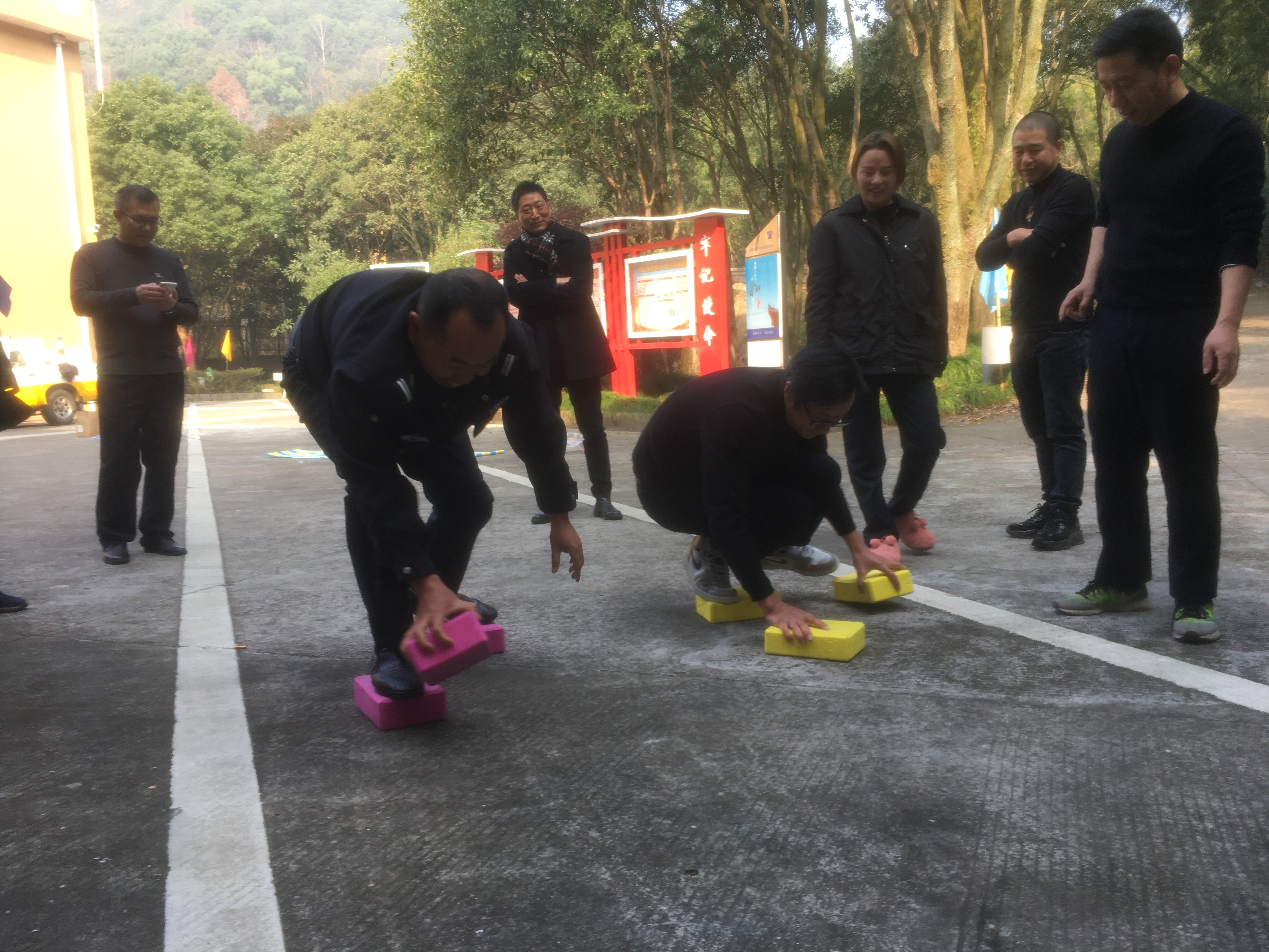 “預備,開始!”隨著裁判員一聲令下,摸石過河比賽開始了,選手們迅速進入狀態(tài),彎腰、拿磚、邁腳,隊員竭盡全力地將腳下的磚塊不停地移動。兩只腳踩在一塊磚上,兩只手把另外兩塊磚不斷地向前移動。“還有5米、2米,堅持??!”隊員們個個腳疼腿軟,但毫不松懈,勇爭第一,最后執(zhí)勤二隊一舉勝出。
