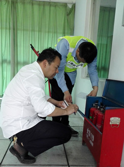 圖為檢查現(xiàn)場 該所副所長應錦清帶領隊員仔細檢查了南北配電房的機電設施,隨后對管理房的干粉滅火器、隧道內的泡沫滅火器,配電房、中控室的二氧化碳滅火器進行逐一檢查,查看每個滅火器的壓力值、出氣管有無彎折、堵塞、損傷,壓把和閥體等金屬件有無變形和銹蝕,是否還在使用年限之內等等,并做好相應的檢查記錄。 陳智慧