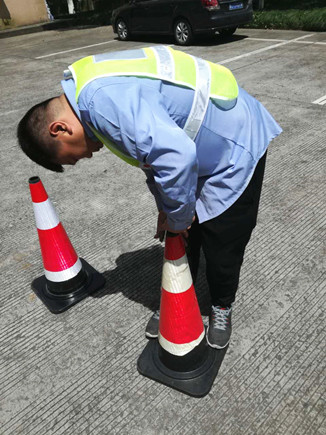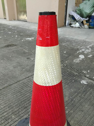 大溪嶺隧道所執(zhí)勤隊(duì)遇隧道內(nèi)車輛事故、拋錨等會出警預(yù)警,處理險情時則會在車輛后方150米處擺放反光警示椎(俗稱小紅帽),它是臨時分隔車流、引導(dǎo)交通,指引車輛繞過危險路段,保護(hù)現(xiàn)場設(shè)施和人員安全,起隔離警示作用。小紅帽的頂端有層反光膜,不用時以套疊式放置,使用時再逐個抽拔出來,因經(jīng)常抽拔,表層反光膜與桶體摩擦而導(dǎo)致反光膜脫落,一陣風(fēng)就會讓反光膜成碎片狀滿天飛舞,給隧道預(yù)警工作帶來極大的不安全因素,但若棄用這些沒有反光膜的小紅帽,則又很浪費(fèi)。