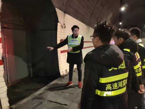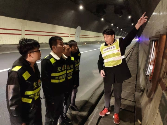 圖為羅鳴春對(duì)樂清市高速公路湖霧嶺隧道開發(fā)有限公司駐隧道南邊執(zhí)勤點(diǎn)的幾位新員工進(jìn)行培訓(xùn) 借此次隧道清洗良機(jī),所長助理羅鳴春對(duì)樂清市高速公路湖霧嶺隧道開發(fā)有限公司駐隧道南邊執(zhí)勤點(diǎn)的幾位新員工進(jìn)行業(yè)務(wù)培訓(xùn),帶他們進(jìn)入隧道熟悉隧道內(nèi)消防箱、人通、汽通的位置,并告知平時(shí)執(zhí)勤時(shí)的工作任務(wù),詳細(xì)解說了隧道封道、卡口、路面執(zhí)勤、施救的操作流程,希望他們能盡快融入工作,為大溪嶺-湖霧嶺隧道平安暢通貢獻(xiàn)力量。臺(tái)溫雙方將持續(xù)合作,共同管理,共同維護(hù)好這條隧道。 陳智慧