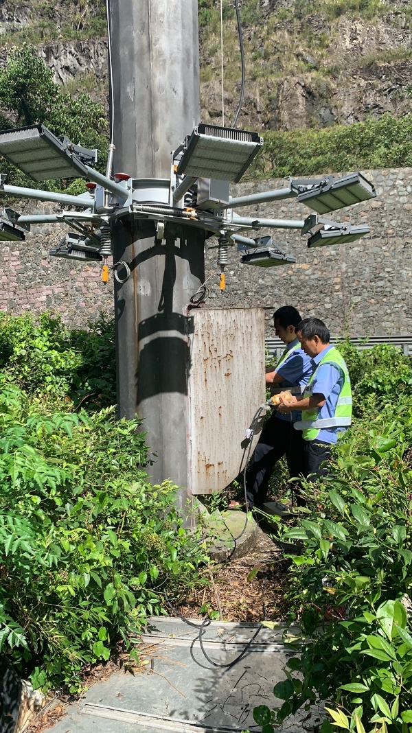 03:22分,隧道停電,電工立即去配電房查看并進(jìn)行搶修。此時風(fēng)大雨大,估計最大風(fēng)力11級以上。