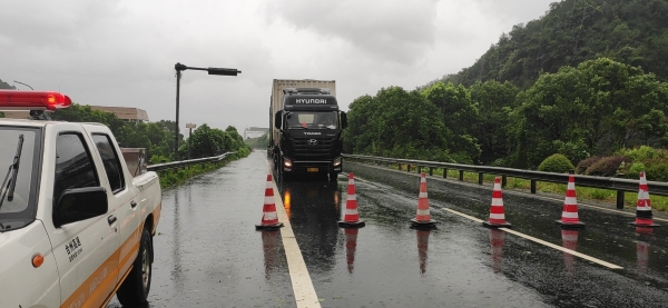 08:12分,接溫州交警通知,受臺風(fēng)影響,高速上很多車輛發(fā)生側(cè)翻事故,要求隊員們在溫向隧道口進(jìn)行封道,隊員們接警后立即在洞口卡口預(yù)警。