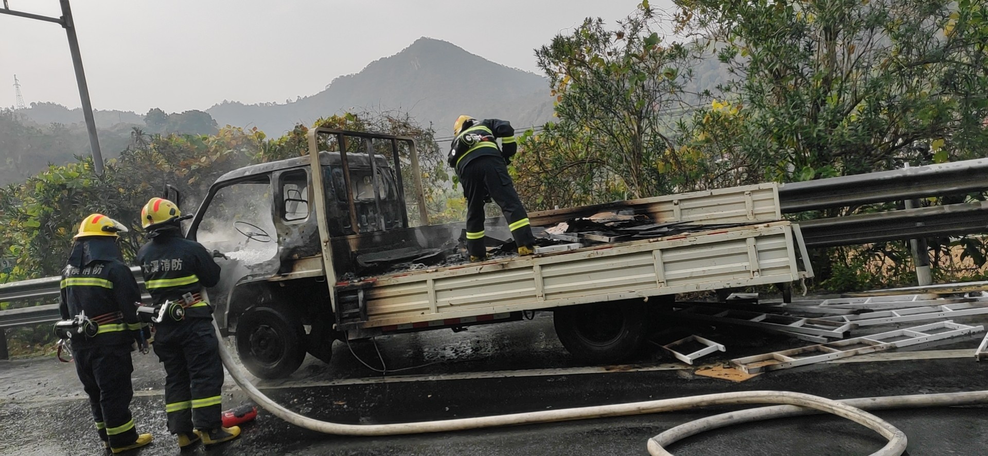 大溪嶺溫向隧道口發(fā)生貨車火災(zāi) |