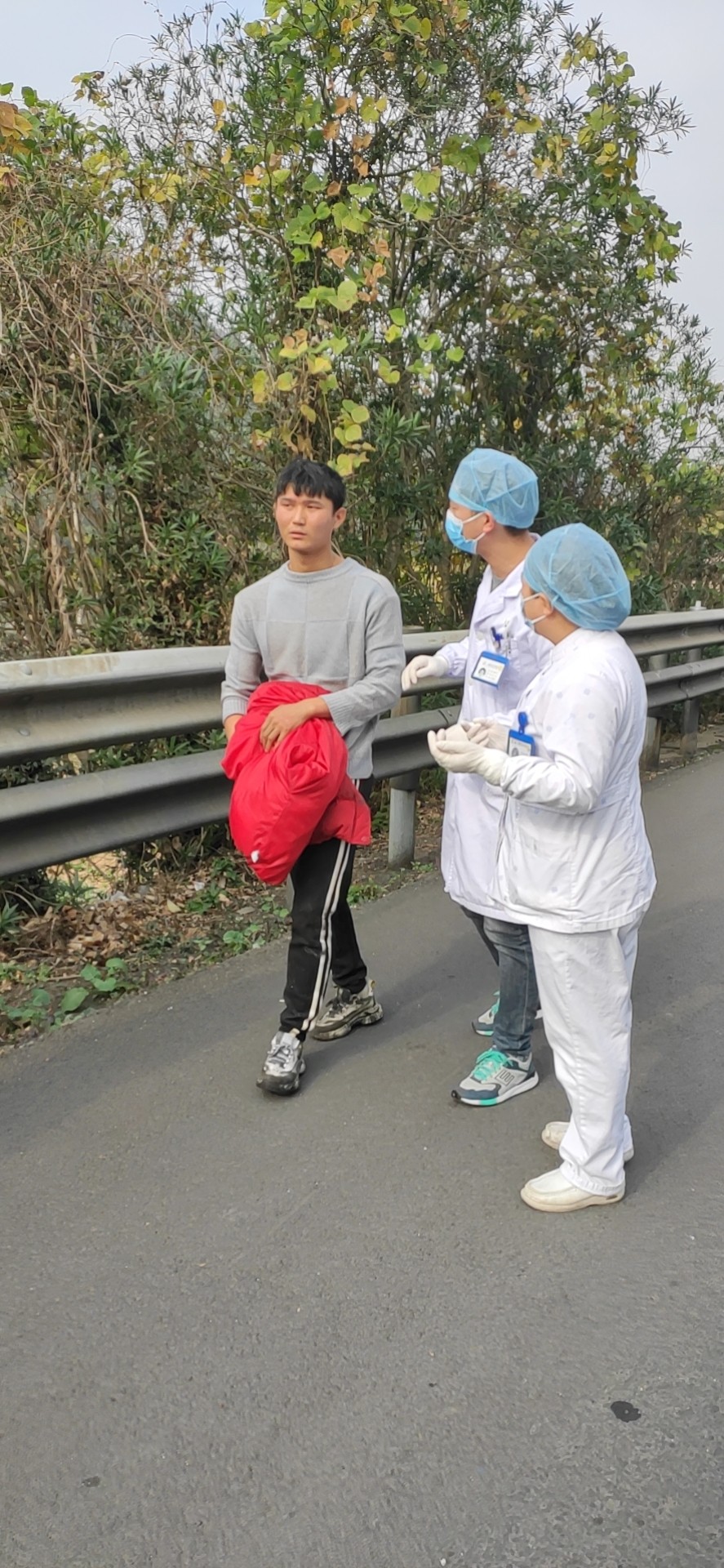 12月13日12:48中控發(fā)現(xiàn)溫向隧道入洞口600米處的情報(bào)板下濃煙滾滾,中控切換火災(zāi)圖像至監(jiān)控中心。并啟動火災(zāi)報(bào)警系統(tǒng),按下火災(zāi)按鈕,由于著火點(diǎn)距離隧道北廣場最近的消火栓有500百米,隊(duì)員們出警時(shí)從倉庫里取出數(shù)只滅火器,由于車輛未實(shí)施封道,車輛一直在事故車旁邊呼嘯而過,給現(xiàn)場救援帶來難度,王宇鵬、湯寧光、陳幸?guī)е鴾缁鹌黠w奔去滅火,巡邏車準(zhǔn)備駛?cè)胧鹿受嚭筮M(jìn)行封道預(yù)警。