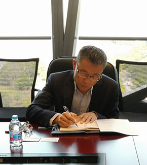 圖為國(guó)泰君安債務(wù)融資部總經(jīng)理黃寶毅作交流筆記