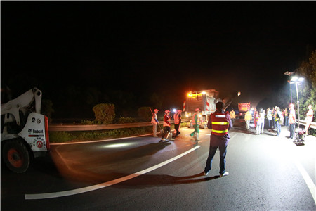 反復(fù)溝通,施工保質(zhì)保進(jìn)度。要在車流量極大的主干線上夜間順利施工,不僅對工程質(zhì)量、進(jìn)度負(fù)責(zé),更要對安全保暢負(fù)責(zé),不能有半點疏忽,不允許絲毫麻痹,而且涉及面極廣。不僅涉及工程部與施工監(jiān)理單位,更涉及到高速交警、路政及運營管理等多個部門,前期工程部協(xié)交警、營運部、監(jiān)理、施工等各相關(guān)單位就施工方案反復(fù)論證,一次次的討論與交流,計劃改了又改,從提前發(fā)布公告到路口設(shè)立標(biāo)志,從預(yù)警車輛安排到分流時間節(jié)點,從搶險預(yù)案到應(yīng)急小分隊建立,路面的反復(fù)測量,綠化養(yǎng)護的同期推進(jìn).....千頭萬緒,在于每一個細(xì)節(jié)的反復(fù)論證。一直到11號下午,確定了最合理有效的交通組織方案,施工前的安全和技術(shù)方面有了最后的交底,器械設(shè)備、材料、人員班組配備等一一清點得到最終確認(rèn)。