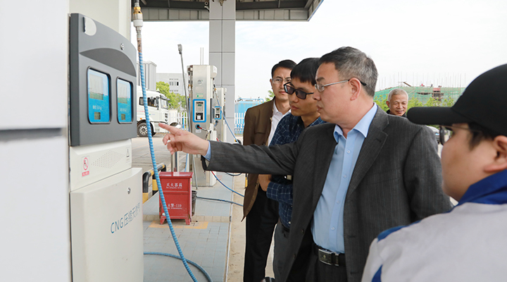 圖為公司領(lǐng)導(dǎo)陳文波在臺(tái)州市浙能油氣發(fā)展有限公司公交綜合站加氣(加油)站調(diào)研