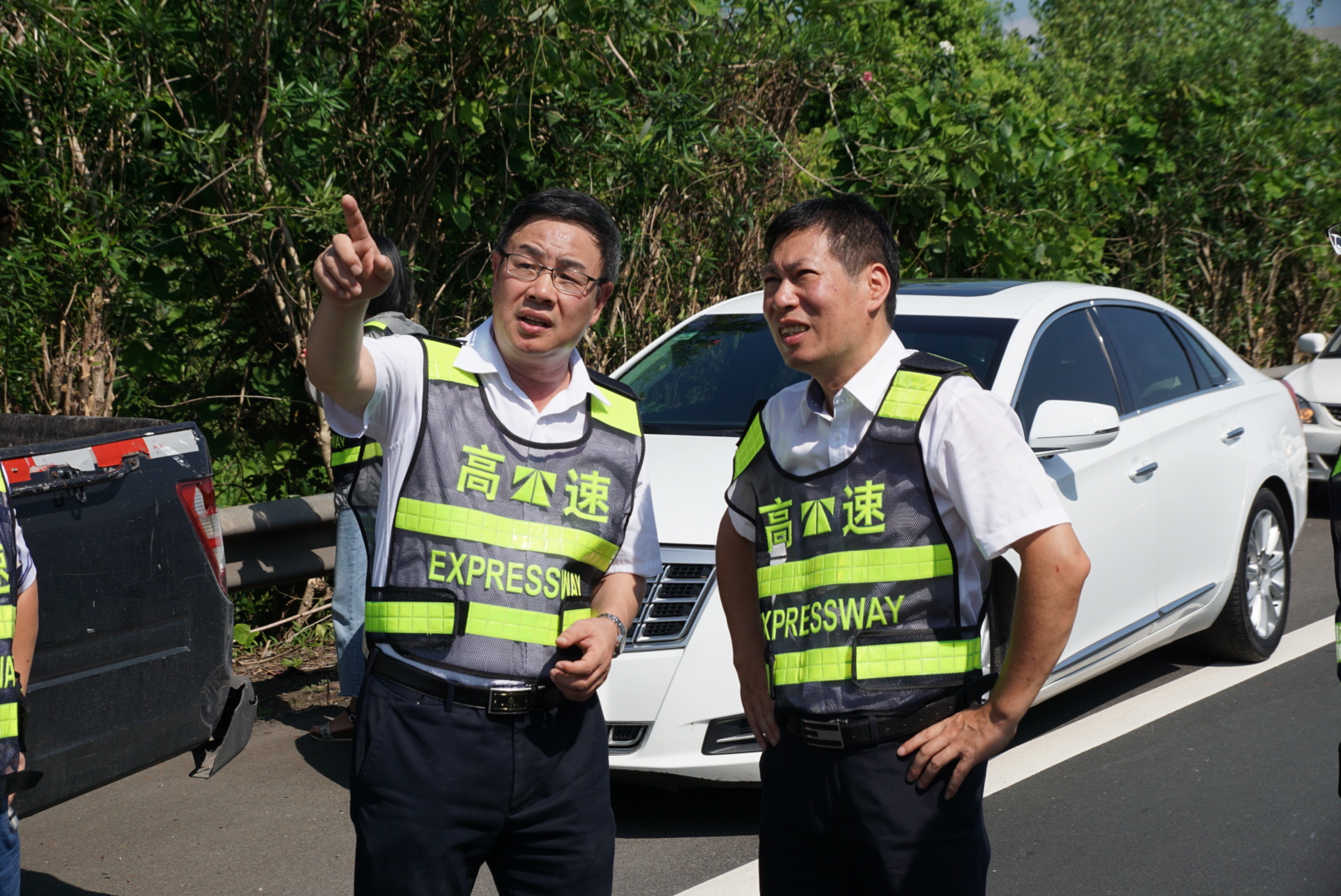在甬臺溫高速公路臺州段溫州方向主線K1668+200M處現(xiàn)場,陳文波詳細了解龍門架吊裝的施工工序、取消省界收費站總體施工進展情況、項目時間節(jié)點、人員班組安排及安全措施準備情況等。