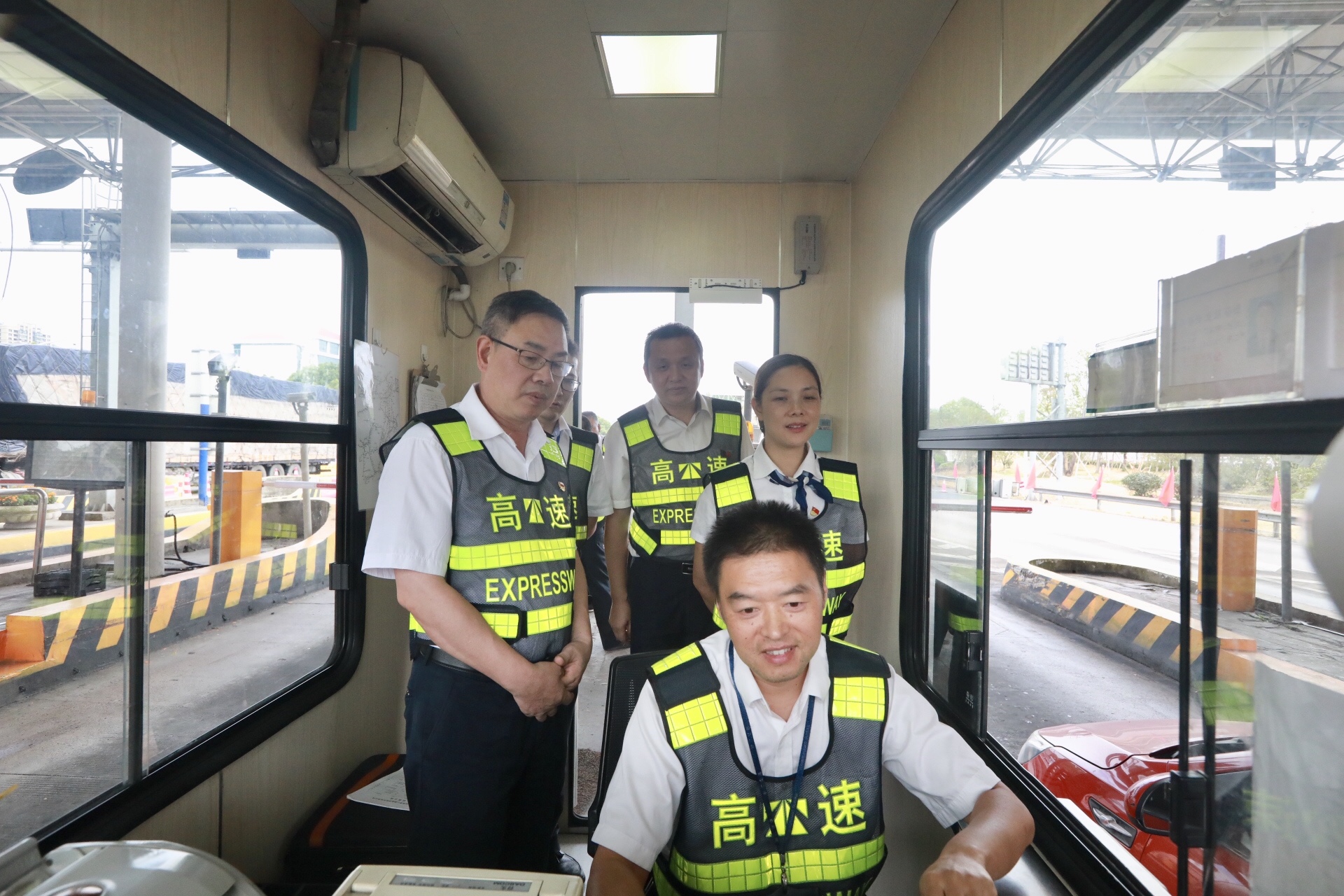 隨后9位班子成員按活動方案安排,分別進(jìn)駐到臺州 、臨海南、臺州南和溫嶺西四個收費站各點位進(jìn)行換崗體驗,從崗前講評到上崗列隊,向窗口一線員工交流現(xiàn)場實際操作流程,“零距離”服務(wù)司乘人員,發(fā)卡操作、收費操作、特情車處理、綠農(nóng)車旁站及拍照等日常業(yè)務(wù)學(xué)習(xí),不走過場,全方面深度體驗。