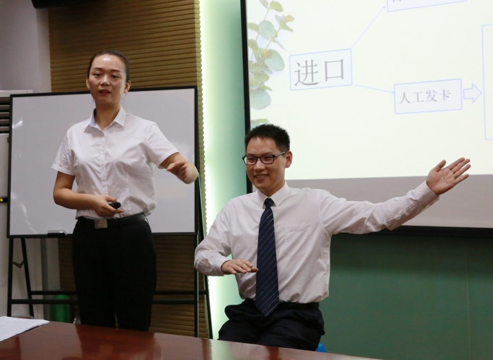 隨后,臨海南收費所文明服務(wù)培訓(xùn)師徐蘇蘇通過PPT,以輕松風(fēng)趣的講課風(fēng)格,給班子領(lǐng)導(dǎo)們上了一堂儀容儀表講解、操作流程演示、文明服務(wù)動作以及心理建設(shè)的課,并通過員工真人示范文明服務(wù)中坐姿、眼神、聲音等練習(xí),令在場的受訓(xùn)者耳目一新。