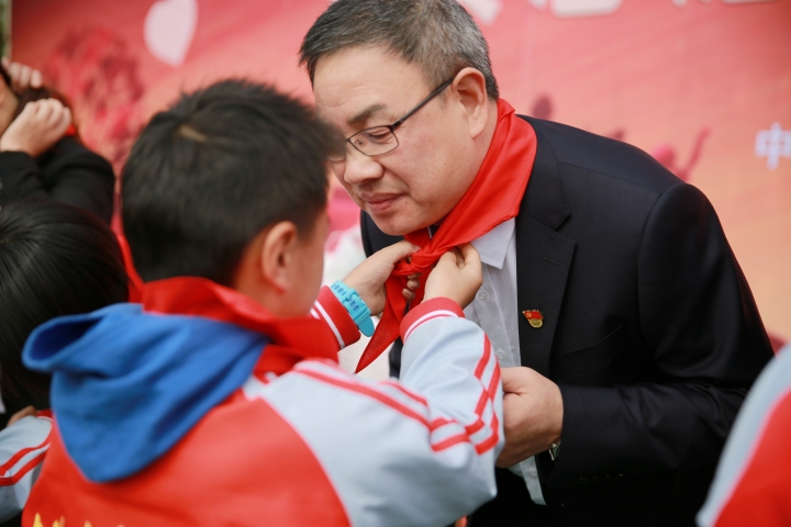 “點(diǎn)亮微心愿”環(huán)節(jié),臺州高速集團(tuán)領(lǐng)導(dǎo)班子們?yōu)?/span>學(xué)生代表送上新衣服、學(xué)習(xí)用品等,孩子們則為志愿者叔叔阿姨們系上了在他們眼中最珍貴的紅領(lǐng)巾。