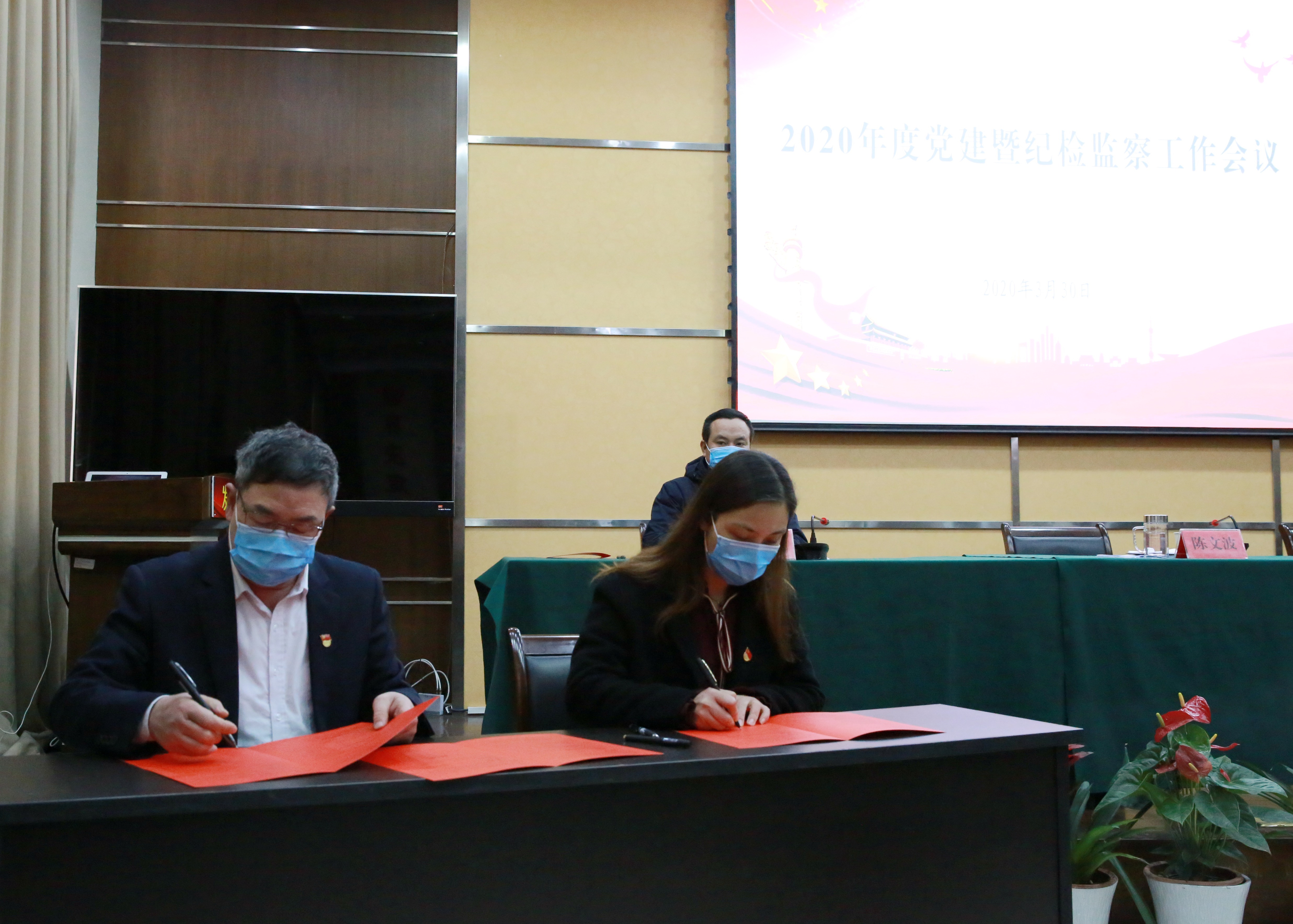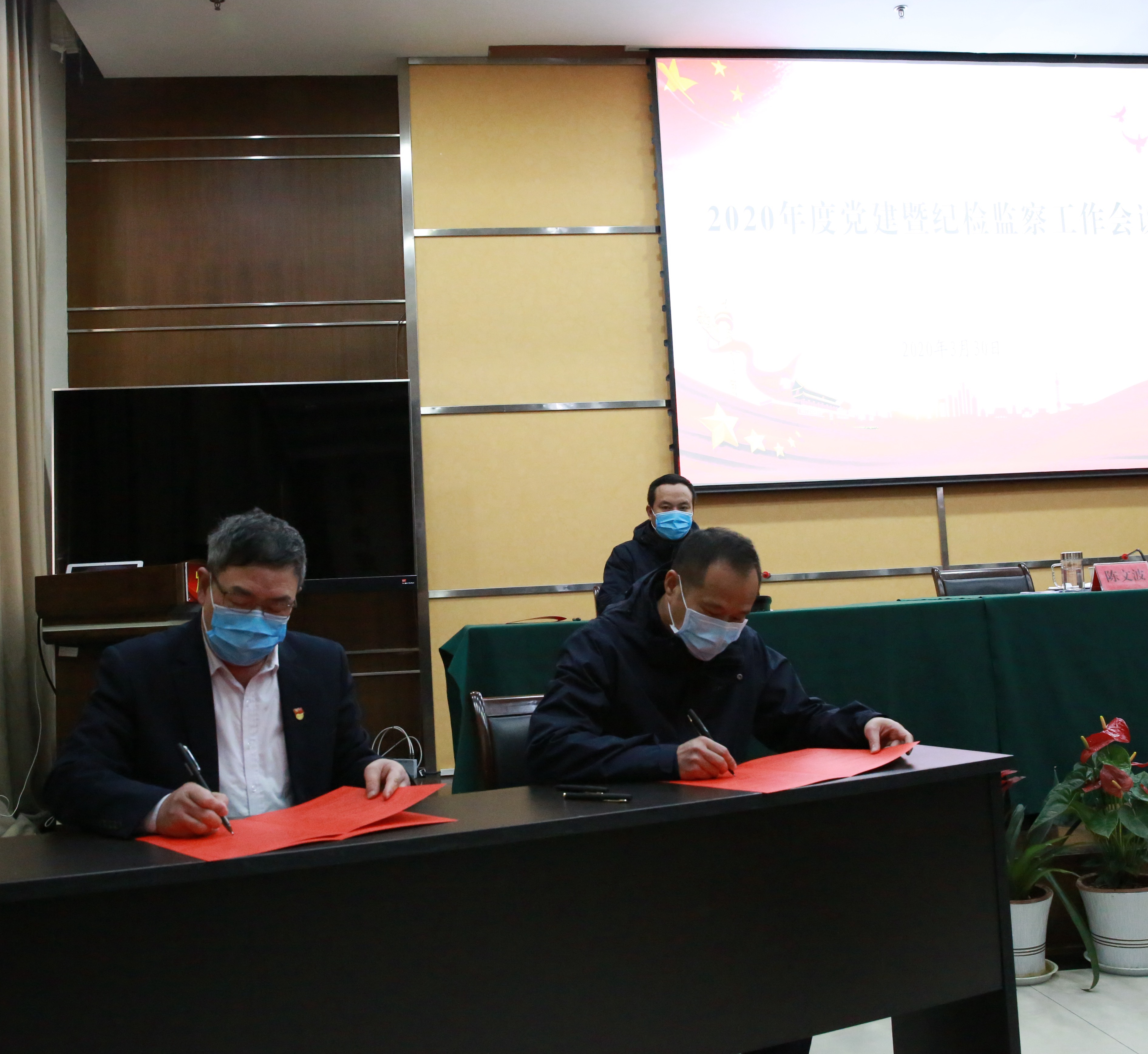 集團(tuán)黨委書記、董事長(zhǎng)陳文波與班子成員簽訂《黨風(fēng)廉政建設(shè)責(zé)任狀》。