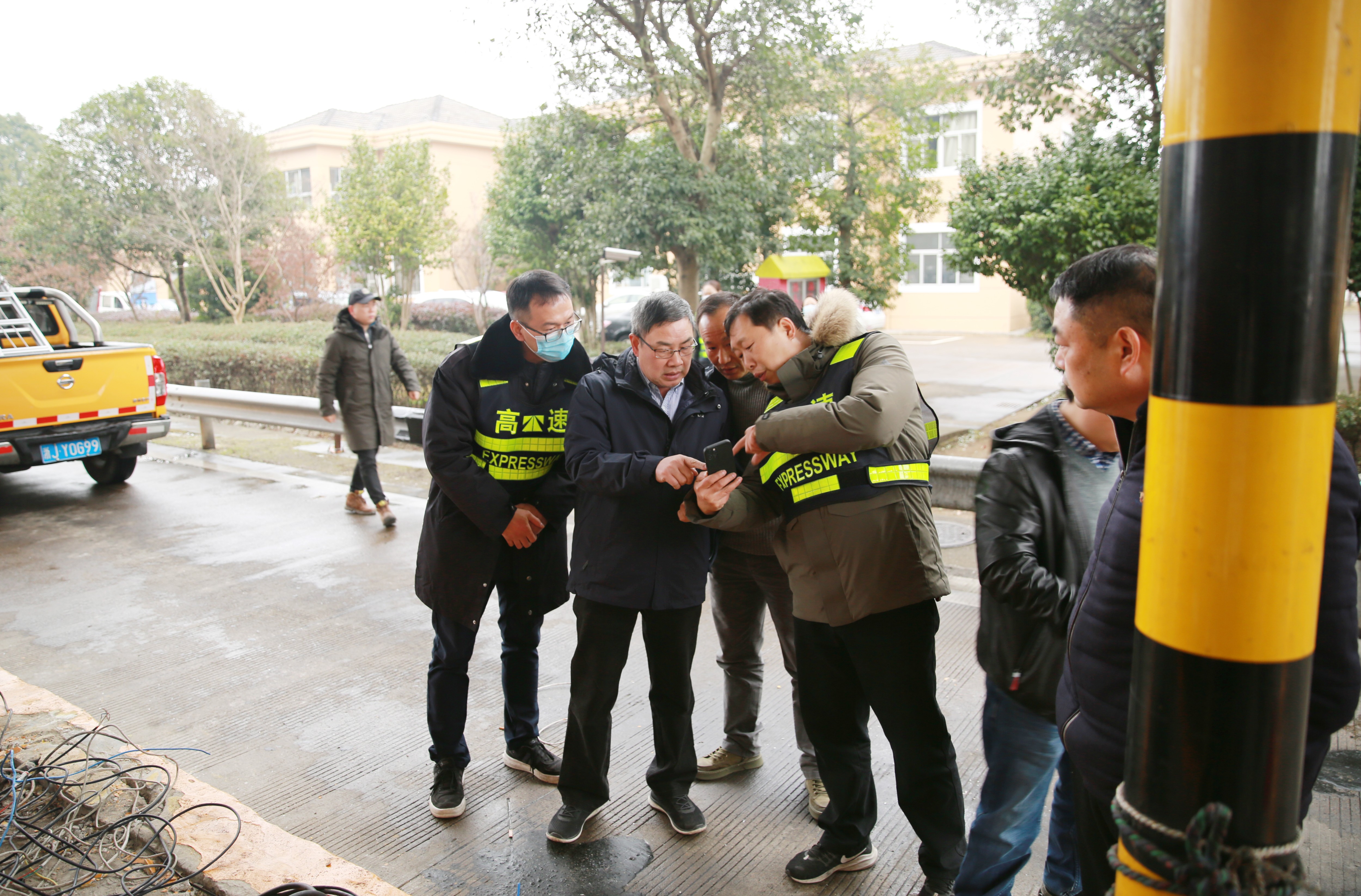 1月20日下午,臺(tái)州高速集團(tuán)黨委書(shū)記、董事長(zhǎng)、總經(jīng)理陳文波趕往臨海南收費(fèi)所,現(xiàn)場(chǎng)指導(dǎo)1月19日深夜大貨車撞倒收費(fèi)崗?fù)さ暮罄m(xù)維修工作。集團(tuán)副總經(jīng)理章海峰,工程養(yǎng)護(hù)部、安保部負(fù)責(zé)人陪同。 事發(fā)現(xiàn)場(chǎng),各種破損之物于昨晚深夜就已被清理干凈,被撞的1號(hào)崗?fù)の恢弥皇O侣懵兜母鞣N電線,以及被截?cái)嗟姆雷仓?。陳文波邊查看現(xiàn)場(chǎng)情況,邊同維養(yǎng)技術(shù)人員就如何加強(qiáng)收費(fèi)崗?fù)ぐ踩禂?shù)展開(kāi)商討,并提出有關(guān)建議。