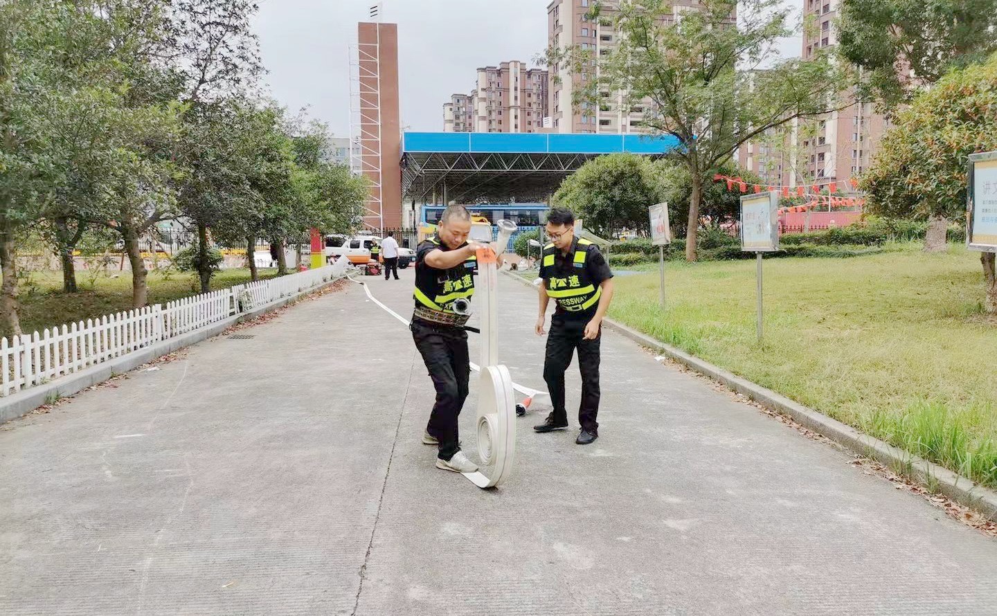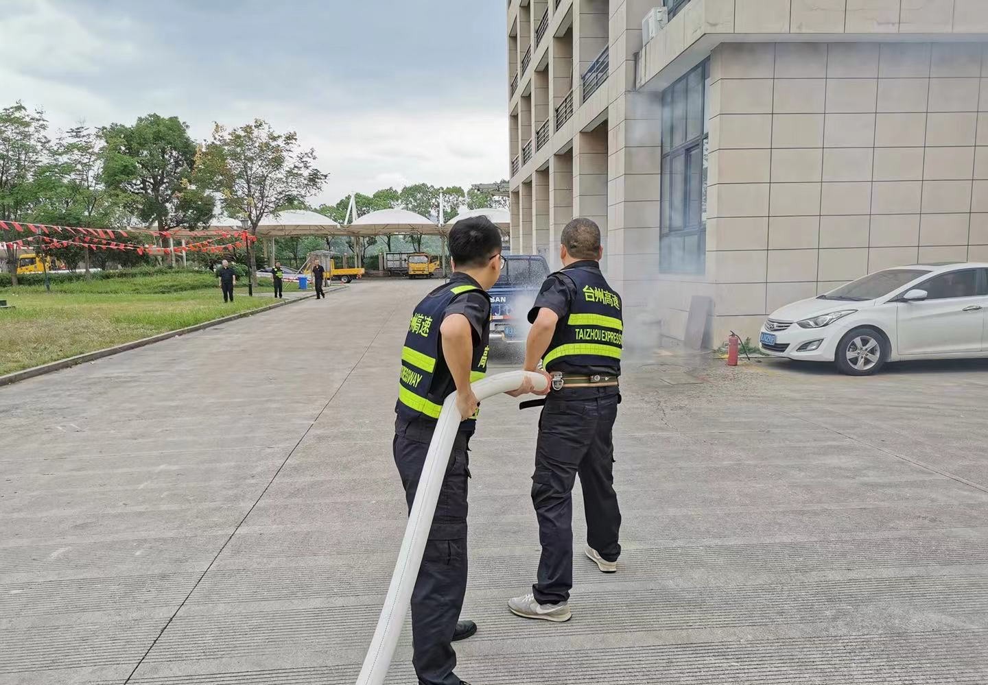 2021年6月18日上午,施救中心全體員工在臺(tái)州所收費(fèi)廣場(chǎng)進(jìn)行了一次應(yīng)急消防演練培訓(xùn)。