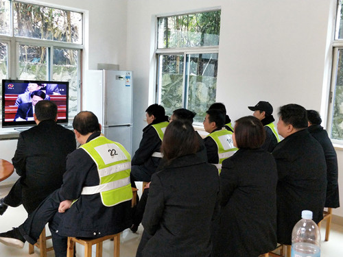圖為市政公司員工收看現(xiàn)場(chǎng)