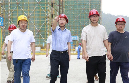 圖為集團(tuán)總經(jīng)理張建平向工程團(tuán)隊(duì)了解項(xiàng)目建設(shè)情況