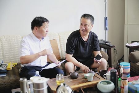 圖為老干部陳惠良開心地談股權(quán)轉(zhuǎn)讓事宜