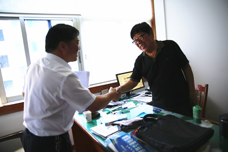 圖為公司總經(jīng)理助理了解摸底老干部的持股情況