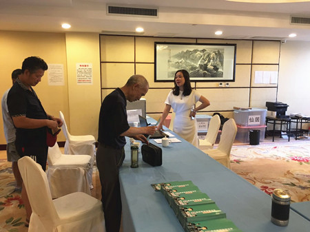 圖為集團(tuán)副董事長(zhǎng)、總經(jīng)理張建平在椒江收購點(diǎn)為股東服務(wù)
