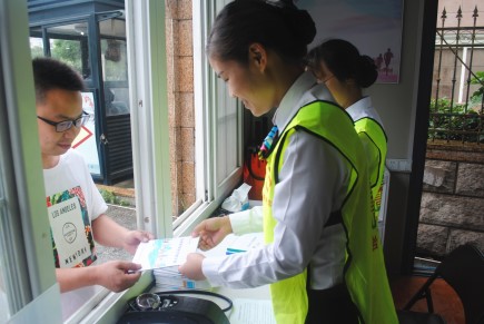 臺州收費(fèi)所志愿者參加“臺州志愿者服務(wù)亭”志愿活動 6月15日上午,臺州收費(fèi)所志愿者服務(wù)隊(duì)參加由黃巖區(qū)團(tuán)委組織的“臺州志愿者服務(wù)亭”志愿服務(wù),隊(duì)員們積極主動、文明有禮,為市民提供各類便民服務(wù)?! ?/p> 在位于黃巖區(qū)自力電影院對面的志愿服務(wù)亭里,臺州收費(fèi)所志愿者服務(wù)隊(duì)的成員們,一邊學(xué)習(xí)如何操作充氣設(shè)備,一邊熟悉服務(wù)內(nèi)容,并向市民發(fā)放《臺州市市民文明手冊》等。對于自己的志愿者服務(wù)工作,大家一臉自豪。就在隊(duì)員們分頭忙碌時(shí),來了兩位外地口音的路人,詢問附近有沒有網(wǎng)吧。大家熱心指路,但這兩人還是一臉茫然,志愿者盧蒙莎就熱心地陪著兩人,穿過馬路,在一個(gè)巷子里的找到網(wǎng)吧。志愿者金愷,今天早班一下班,顧不得休息,就急著趕到了服務(wù)亭,加入志愿者服務(wù)的隊(duì)伍。