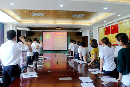 圖為全體黨員重溫入黨誓詞 會議第一項內(nèi)容由該所黨支部書記王小勇帶領(lǐng)全體黨員重溫入黨誓詞,王小勇要求各位黨員牢記宗旨,做一名合格黨員。接下來全體黨員觀看《廖俊波:永遠(yuǎn)的“樵夫”——一名共產(chǎn)黨員的樂與愛》視頻,學(xué)習(xí)市委書記王昌榮在全市領(lǐng)導(dǎo)干部會議上的講話精神等。大家結(jié)合高速精神大討論,對照先進(jìn)典型和“四講四有”合格黨員標(biāo)準(zhǔn),聯(lián)系個人思想和工作實(shí)際,認(rèn)真開展批評與自我批評,查找不足,剖析原因,明確方向,并提出改進(jìn)措施。 會后,王小勇強(qiáng)調(diào),各位黨員要做到對黨忠誠,個人服從組織,樹立理想信念,強(qiáng)化黨員意識,做好本職工作。 鄭瑛芝