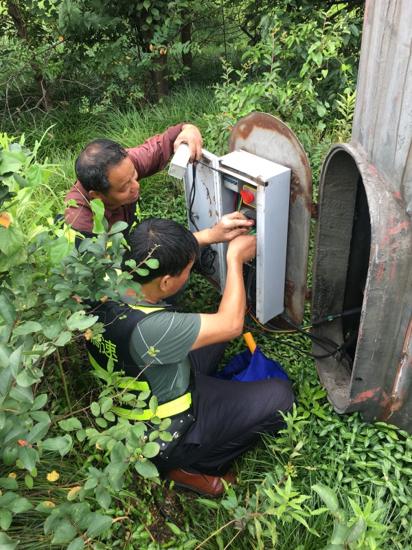 當(dāng)天,戶外溫度超過37攝氏度,但維護(hù)人員仍一絲不茍對(duì)每架高桿燈認(rèn)真檢測(cè)過去。當(dāng)發(fā)現(xiàn)溫嶺西收費(fèi)站砸道附近有一架高桿燈因?yàn)殡妱?dòng)機(jī)問題導(dǎo)致高桿燈無法下降時(shí),維護(hù)人員當(dāng)即決定更換電機(jī)。因?yàn)楦鼡Q時(shí)半個(gè)身體還要鉆到燈桿里面操作,內(nèi)部半封閉的空間使隊(duì)員悶喘不過氣來,但他們并沒有退縮,而是采取了分工合作,輪流交替工作模式,從拆卸到固定再到上皮帶一氣合成,不到半個(gè)小時(shí)便將新電機(jī)安裝到位??粗底杂傻臒糇趫?chǎng)人員都已忘了自已衣服干濕了多少遍。