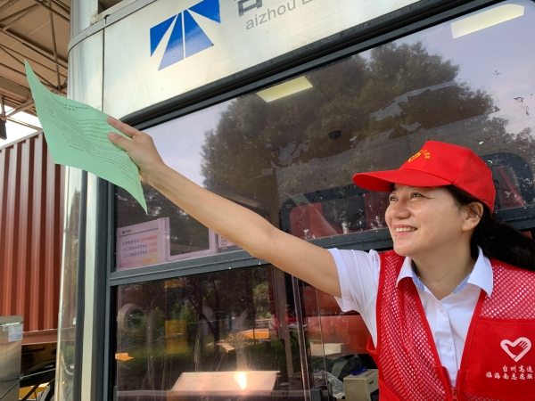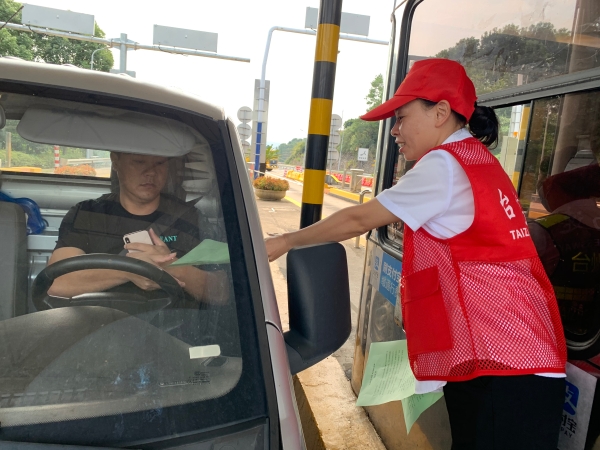 910上午,臨海南收費(fèi)所志愿者身穿耀眼的紅馬甲,在車道出入口向過往司乘人員發(fā)放“弘揚(yáng)傳統(tǒng)美德,制止餐飲浪費(fèi)”倡議書,號(hào)召?gòu)V大司機(jī)從自己做起、從現(xiàn)在做起、從點(diǎn)滴做起,自覺抵制餐飲浪費(fèi),積極號(hào)召身邊的人傳承勤儉節(jié)約的良好家風(fēng),向全社會(huì)營(yíng)造“浪費(fèi)可恥、節(jié)約為榮”的深厚氛圍。