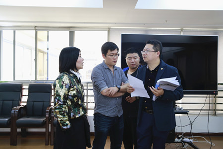 圖為市直機(jī)關(guān)紀(jì)工委副書記陳良軍對公司黨建工作提出建議
