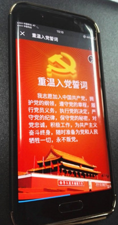 “凝視黨旗,我把奉獻(xiàn)刻心里;舉起右拳,我把責(zé)任刻心里;宣讀誓言見證我對(duì)黨的忠誠;這崇高的選擇是我終身的信仰----”點(diǎn)開微信圖文信息,伴隨著低沉渾厚的男聲詩朗誦,接收到信息的黨員們不由肅然起敬,仿佛置身當(dāng)年黨旗下宣誓的莊嚴(yán)時(shí)刻。