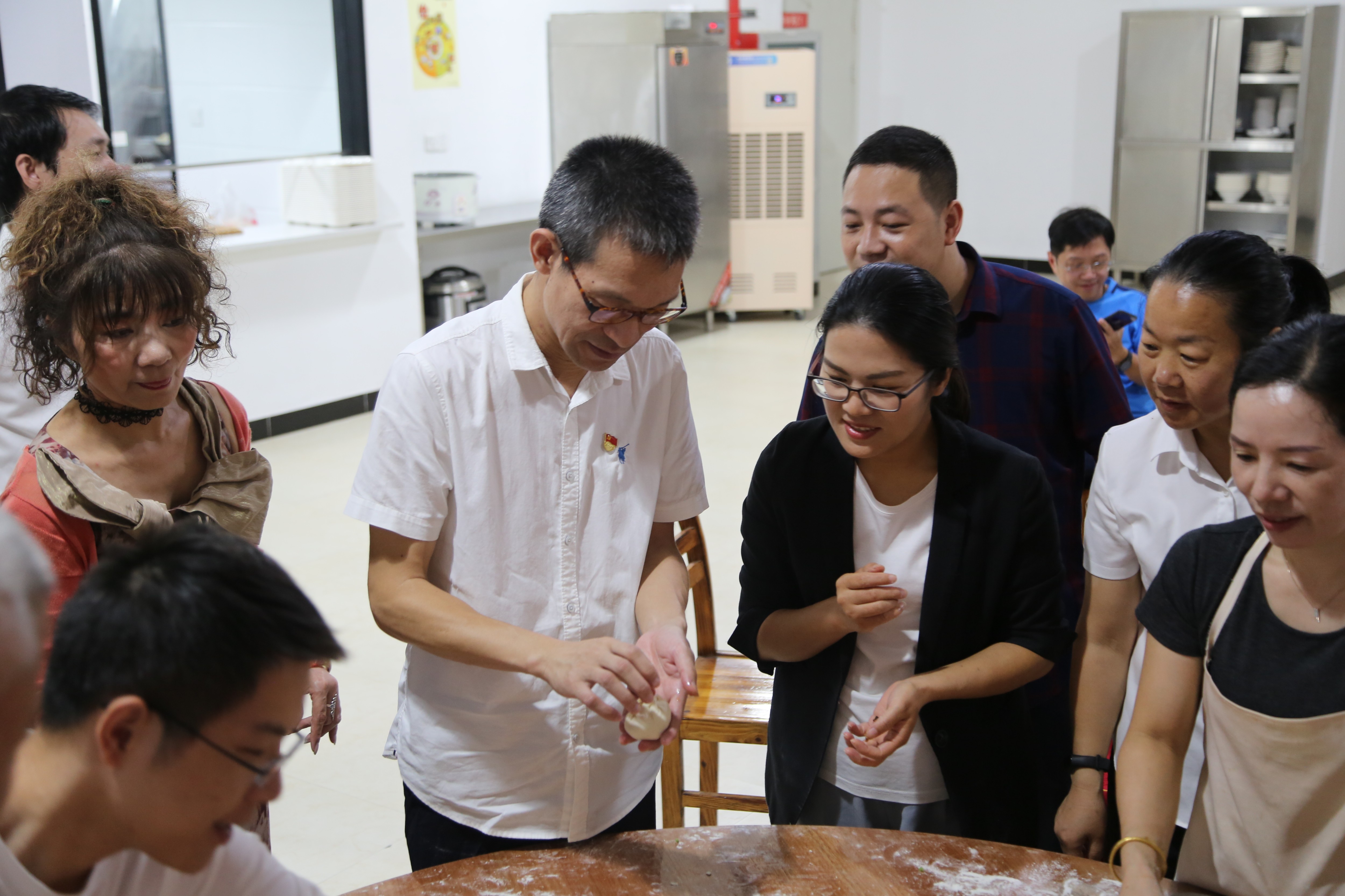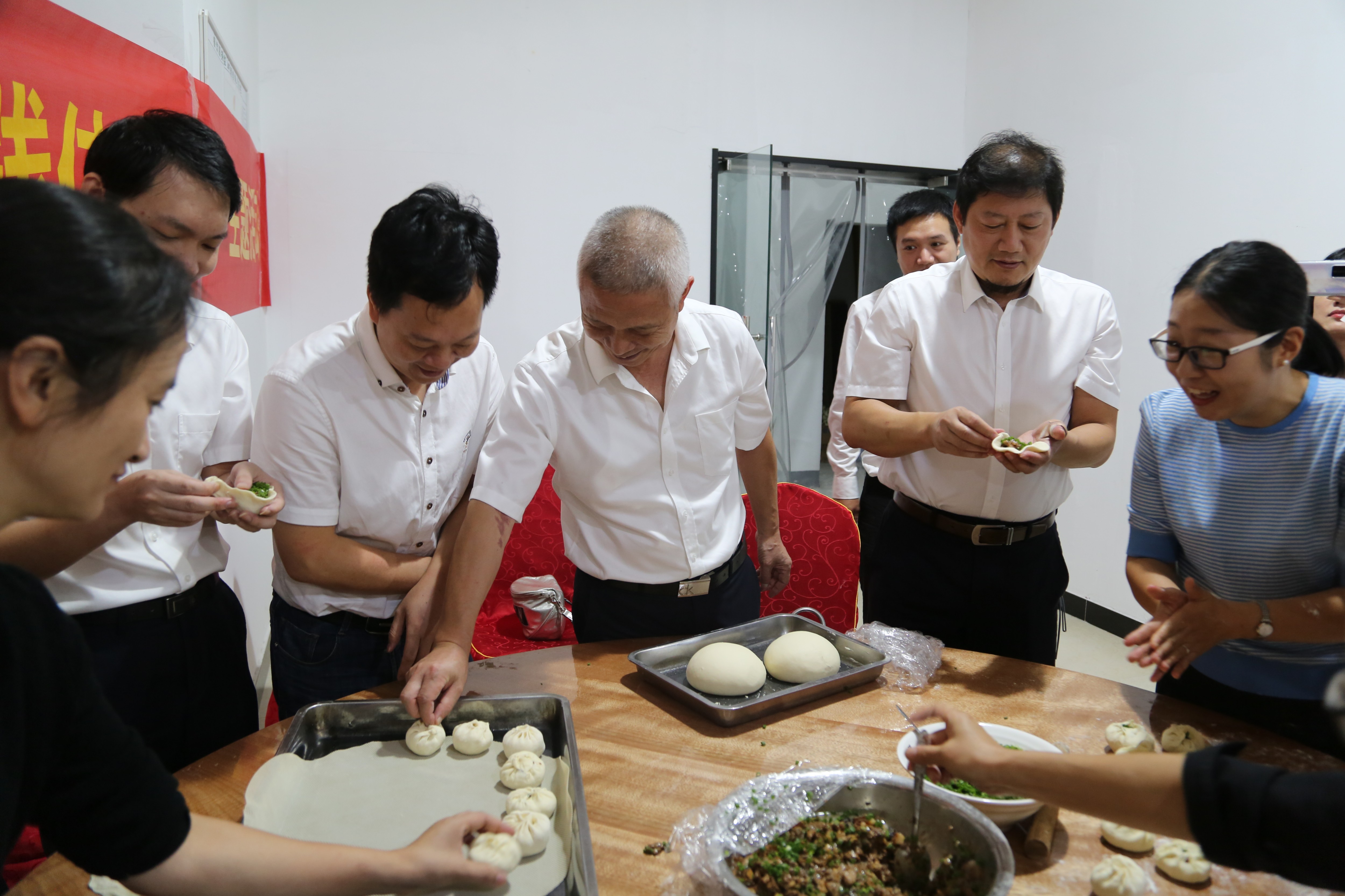 “如何發(fā)酵面團?如何搟包子皮?如何捏成漂亮的形狀?”玖璽逸墅展廳食堂工作人員為大家一一講授了制作包子的要領(lǐng),大家紛紛洗凈雙手,擼起袖子,躍躍欲試,和面、拌餡、搟皮、包包子,分工有序,互幫互助,猶如一個溫馨融洽的大家庭,新老員工在活動中加強了交流,加深厚情誼,為今后更好的團隊合作打下了基礎(chǔ)。