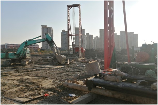 據(jù)了解,椒江洪家項目試樁工程于2020年12月18日正式開標,隨后樁機、挖掘機等機械設備陸續(xù)進場,施工管理人員對項目場地內水電線路、臨時道路、泥漿池等前期工作進行精心布置。截至目前,現(xiàn)場已就位兩臺樁基。