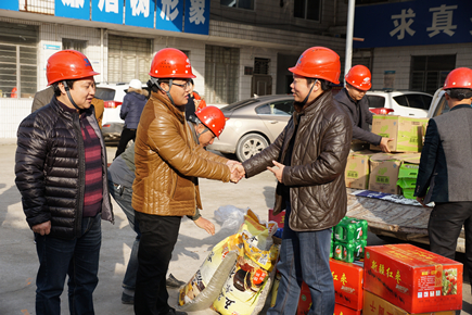上圖為慰問現(xiàn)場 每到一個標段,慰問組都詳細了解項目當前施工情況以及春節(jié)期間的工作安排,為他們送上了慰問品,對于那些臨近春節(jié)仍奮戰(zhàn)在工地一線的工人們,慰問組代表市政公司表達了衷心的感謝,并提早向全體工作人員致以新春佳節(jié)的祝福。 鐘彪指出,內(nèi)環(huán)路(黃巖段)在2017年度建設(shè)時間緊,任務重,各項目部在搶抓工程進度的同時要注重安全生產(chǎn),關(guān)心工人生活,保障工人人身和財產(chǎn)安全,特別是過年期間,各項目部負責人和值班人員要保持24小時通訊暢通,保證各項工作正常運轉(zhuǎn),確保平安過節(jié)。 張琛