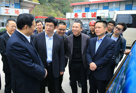 圖為市長(zhǎng)張兵向公司總經(jīng)理張建平詢問情況