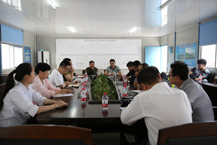 圖為考評(píng)組在8#立交項(xiàng)目部匯總反饋檢查問題