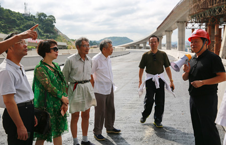 圖為老干部在8#立交上聽(tīng)取匯報(bào)