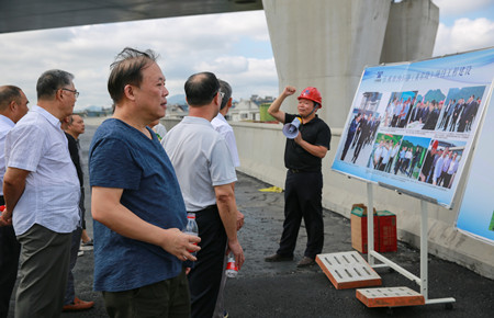 圖為在6#立交上了解工程建設(shè)情況